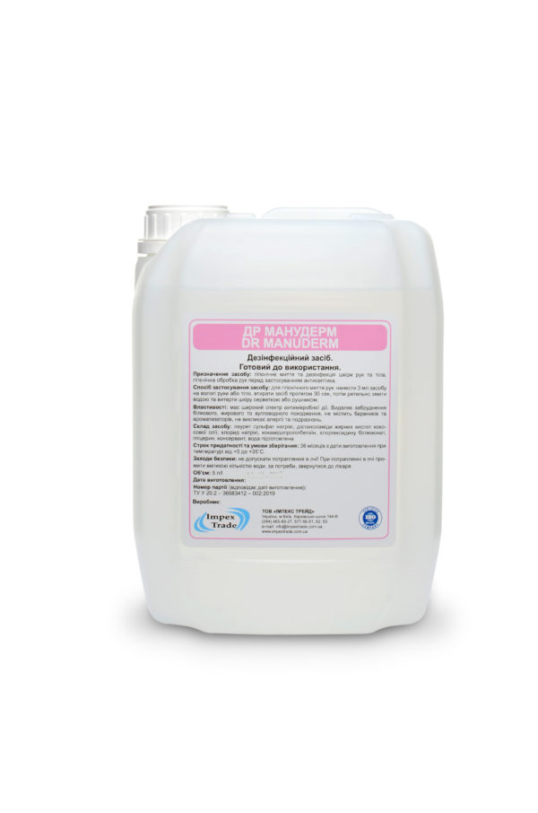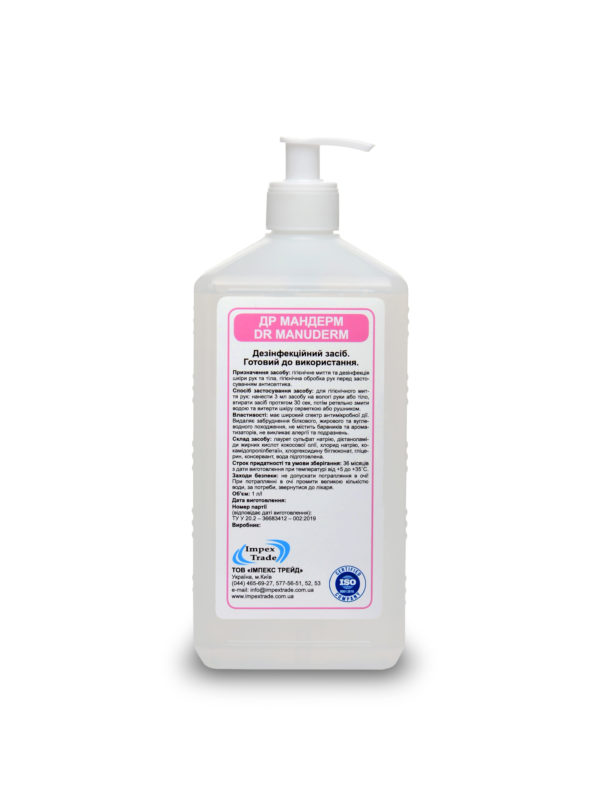 Застосування: засіб призначений для гігієнічної дезінфекції шкіри рук та тіла осіб, що контактують з харчовими продуктами та продовольчою сировиною. Кисті рук, передпліччя та ліктьові згини змочити теплою водою, засіб у достатній кількості (не менше 3 мл) нанести на долоні та розподілити таким чином, що він повністю покривав поверхню кистей рук, зап’ястя, міжпальцьові зони, тривалість обробки відповідно до загальноприйнятої методики протягом 30 сек. Для брудної чи багатої на сальні залози шкіри експозиція має бути не менш ніж 60 сек. Після закінчення часу, відведеного на обробку, засіб ретельно змивають чистою проточною водою. Висушити шкіру рушником (серветкою).