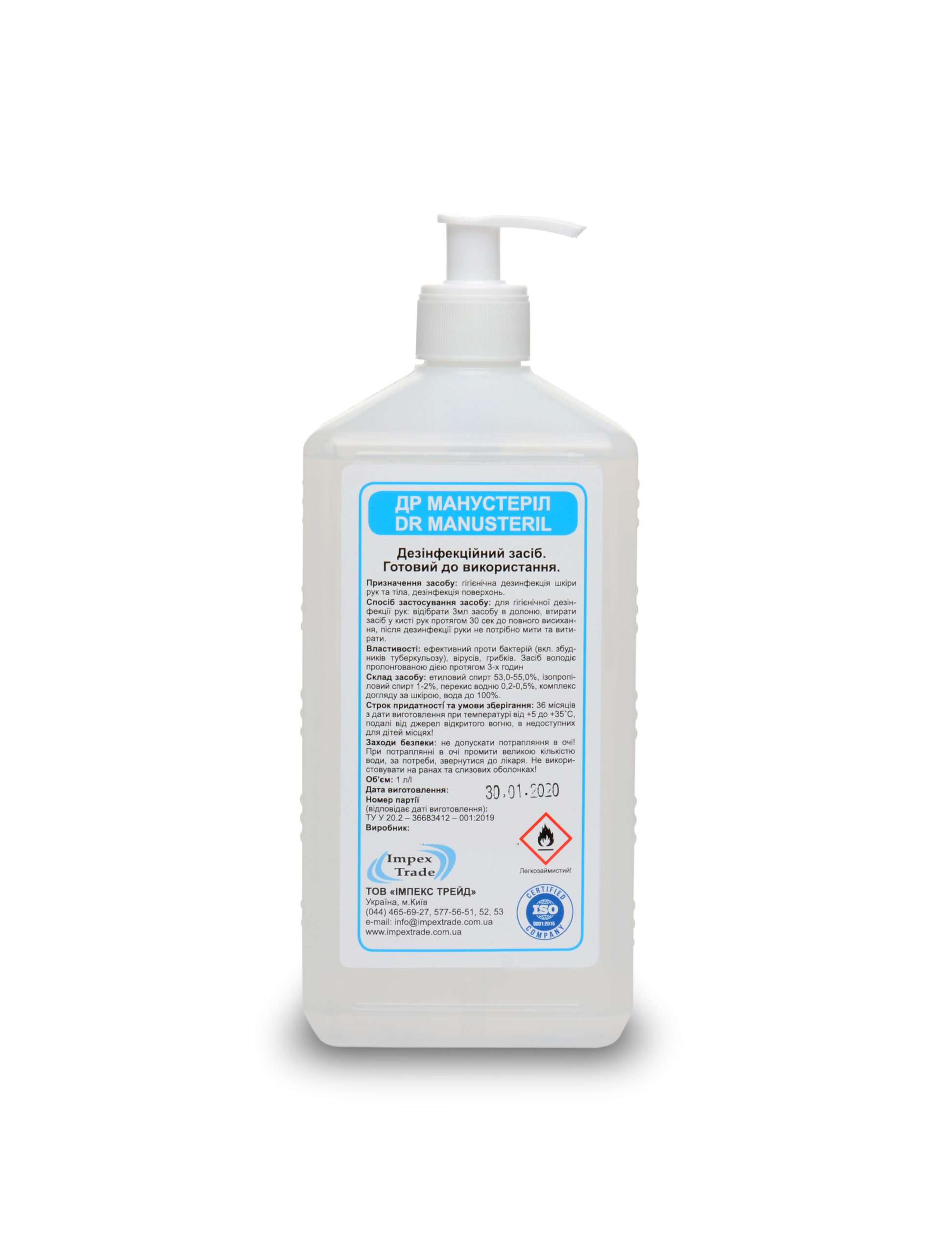 Властивості: засіб для швидкої дезінфекції шкіри рук і тіла. Являє собою готовий до застосування спиртовий засіб на основі спирту етилового – 53,0-55,0%, спирту ізопропілового – 1,0-2,0%, перекису водню – 0,2-0,5%, у формі прозорої рідини, легко наноситься, забезпечує ефективну дезінфекцію. Має широкий спектр дії (бактерицид, віруліцид, туберкулоцид, фунгіцид). Ефективний по відношенню до всіх мікроорганізмів, включаючи кишкову паличку, молочно-кислі бактерії, дріжджі, цвіль, грибок, спори. Екологічно безпечний засіб. Не містить потенційних алергенів і подразників (ароматизаторів, віддушок, барвників). Не викликає алергії та подразнень шкіри навіть при тривалому застосуванні. Залишає приємне відчуття чистої, доглянутої та зволоженої шкіри. Має пролонговану дію не менше 3-х годин. Не потребує використання води та ополіскування.